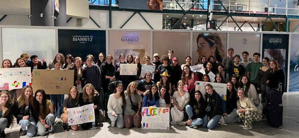 It was another few hours before we were reunited with our exchange students in Bayonne, greeted at the gate by signs declaring “Bienvenue à Paris,” and plenty of excitement!