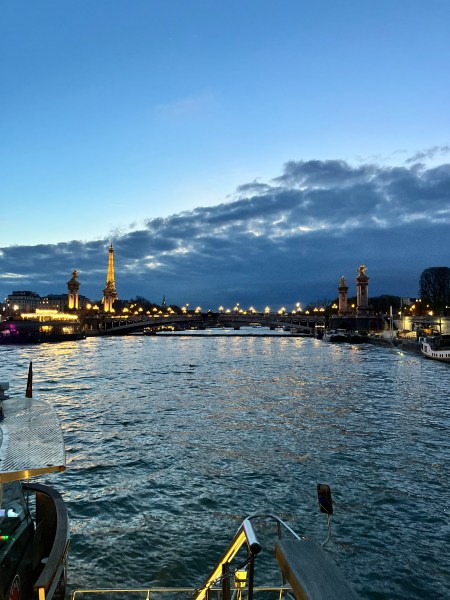 Friday was a visit to the Catacombs, Ernest Hemingway’s old apartment, and seeing the Crown of Thorns at the Sainte-Chapelle. The latter was one of my favorite moments of the trip, as God’s presence and the sense of faith was palpable when the Crown of Thorns was brought out. Many students waited in line for an hour to venerate! Next, a boat tour along the Seine, and in spite of the cold, no extremities were lost!